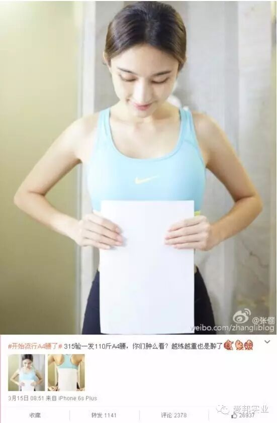 一直喜爱健身的张俪也晒出“A4腰”照,并调侃道:“315验一发110斤A4腰,你们肿么看?越练越重也是醉了!”。