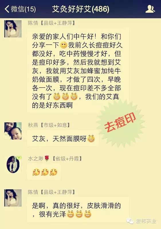 长了痘痘,发红发肿,这时您抹上点艾灰,会很快干瘪,慢慢就掉了,不会留痘印哦~~~