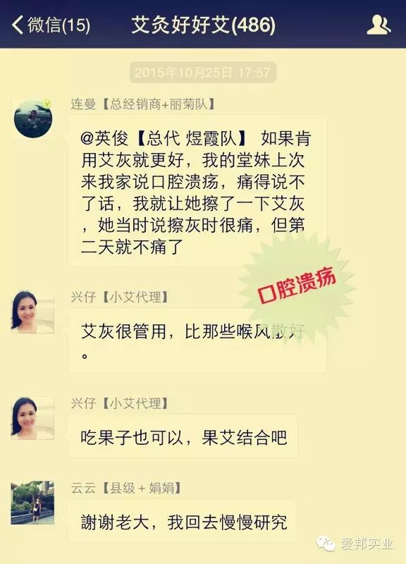 把艾灰直接擦在口腔溃疡处,停留一两分钟簌口就OK,刚擦上去有点疼,但有奇效。