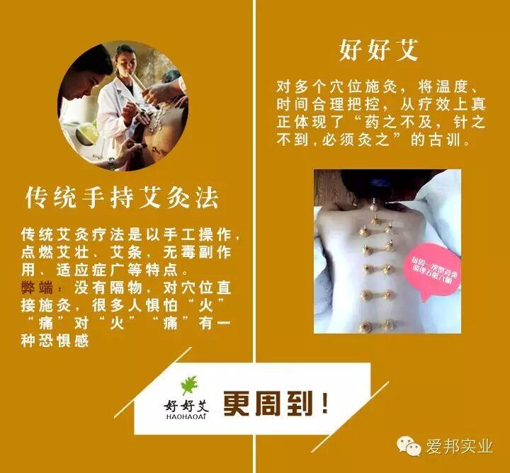 好好艾重新定义艾灸,为了满足各类亚健康人群对保健养生的需求。在传统艾灸的基础上,臻选五年黄金艾绒,创新研发出突破性的好好艾新品,是居家、旅行、送礼首选的保健产品。好好艾个头小、能量大、易操作、便携带、很安全,原理是哪里痛灸哪里,适用于人体各个部位穴位,在任何时间,地点都可以好好艾自己。