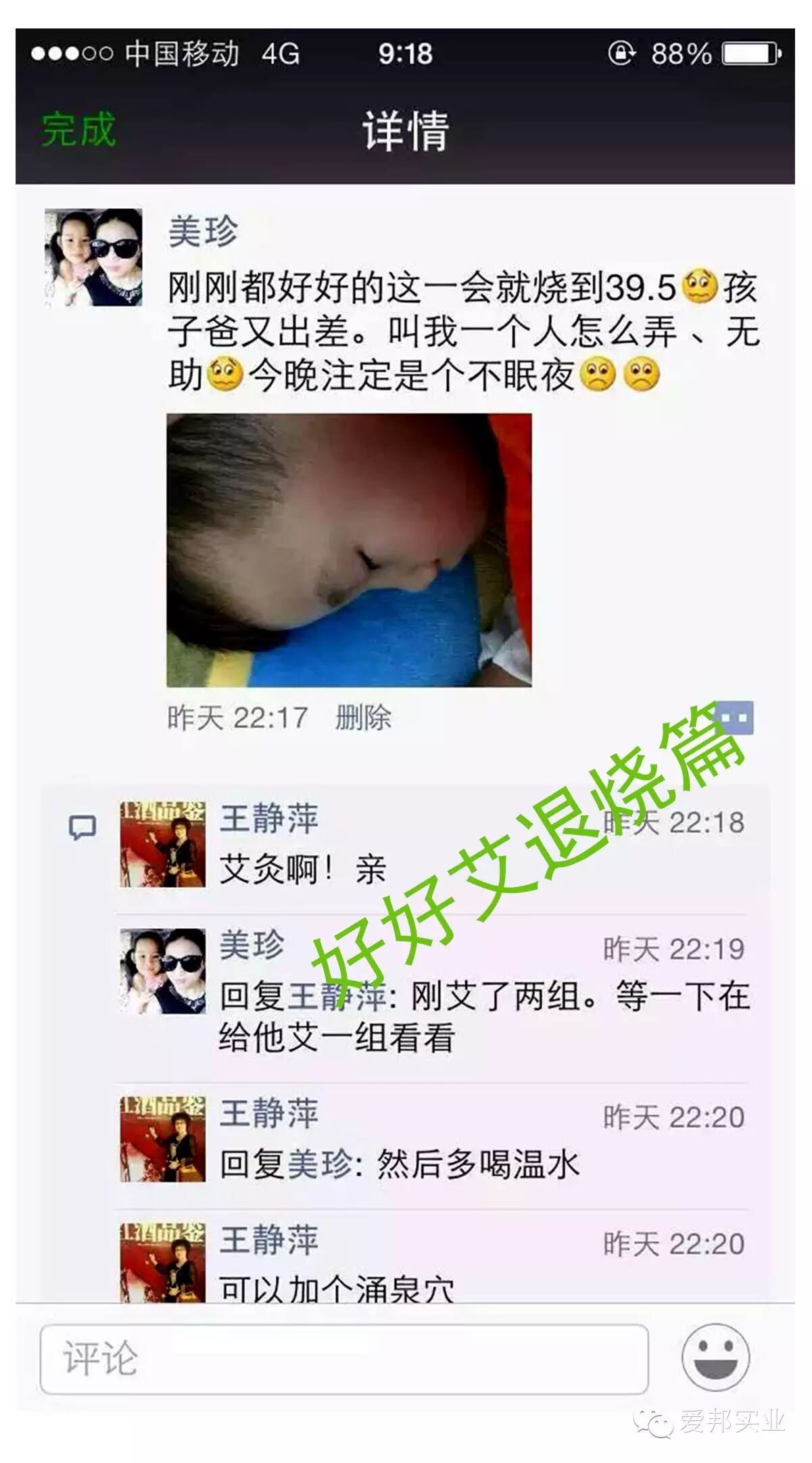 小孩半夜发烧怎么办?先生不在家半夜没法去医院怎么办?不想小孩变成药罐子怎么办?纠结苦恼后怎么办?来看这位妈妈的应对措施,在惊慌失措中立马冷静下来,找准穴位用好好艾给宝宝艾灸,宝宝不用打针吃药就见效,可见这绝对是一个理智的处理办法,家中常备好好艾,让全家都健康!