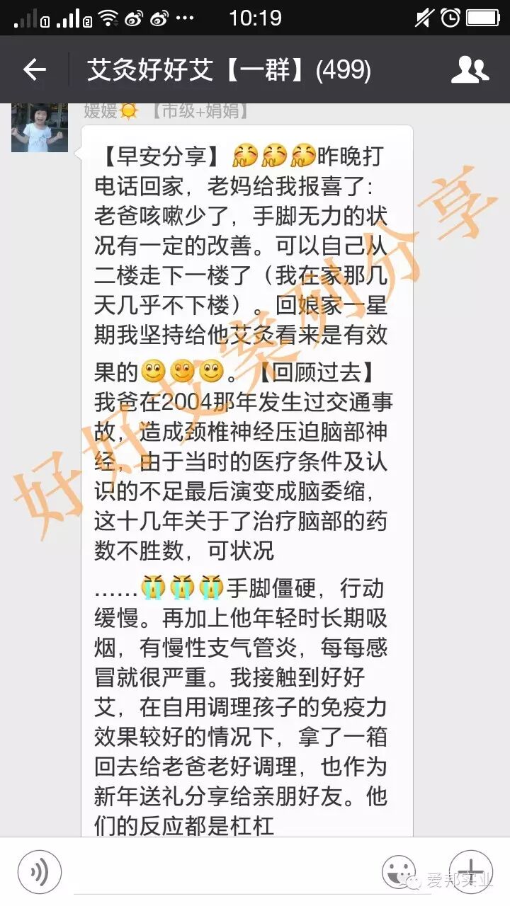 案列分享:因为遇见好好艾,难以掩饰的喜悦。看看团队里的家人们积极的来分享了自己的喜悦你便知道好好艾带给大家的力量有多大。媛媛是好好艾团队的家人之一,她叙述了他父亲在2004年因为一场交通事故造成的颈椎神经压迫脑部神经,由于医疗和家庭各方面的条件有限导致演变成脑萎缩,一场无情的交通事故,造成无情的灾难,带给这个家庭多大的伤害,在聆听中悲喜交集,悲的是心疼,喜的事因为好好艾挽救的一个脆弱的家庭,使他们从新收获了幸福。真实事迹往下看、、、、